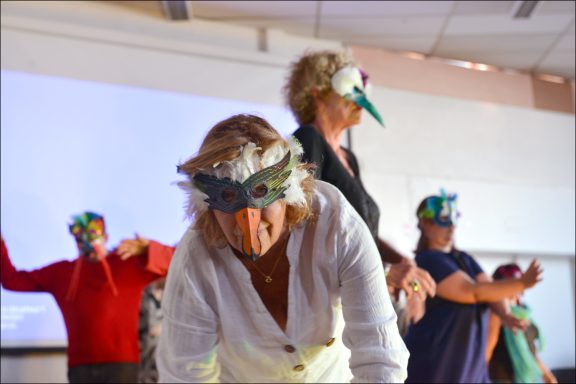 Cette année, après avoir exploré au travers d’improvisations les thèmes de l’habitat et des utopies qui s’y rattachent, il a été proposé de travailler à partir de l’œuvre d’Aristophane « Les oiseaux » qui met en scène des humains partis rejoindre les oiseaux pour créer un nouveau monde. Décaler l’idée d’un autre possible dans un univers plus onirique : rêver l’oiseau et le monde que l’on souhaiterait créer.